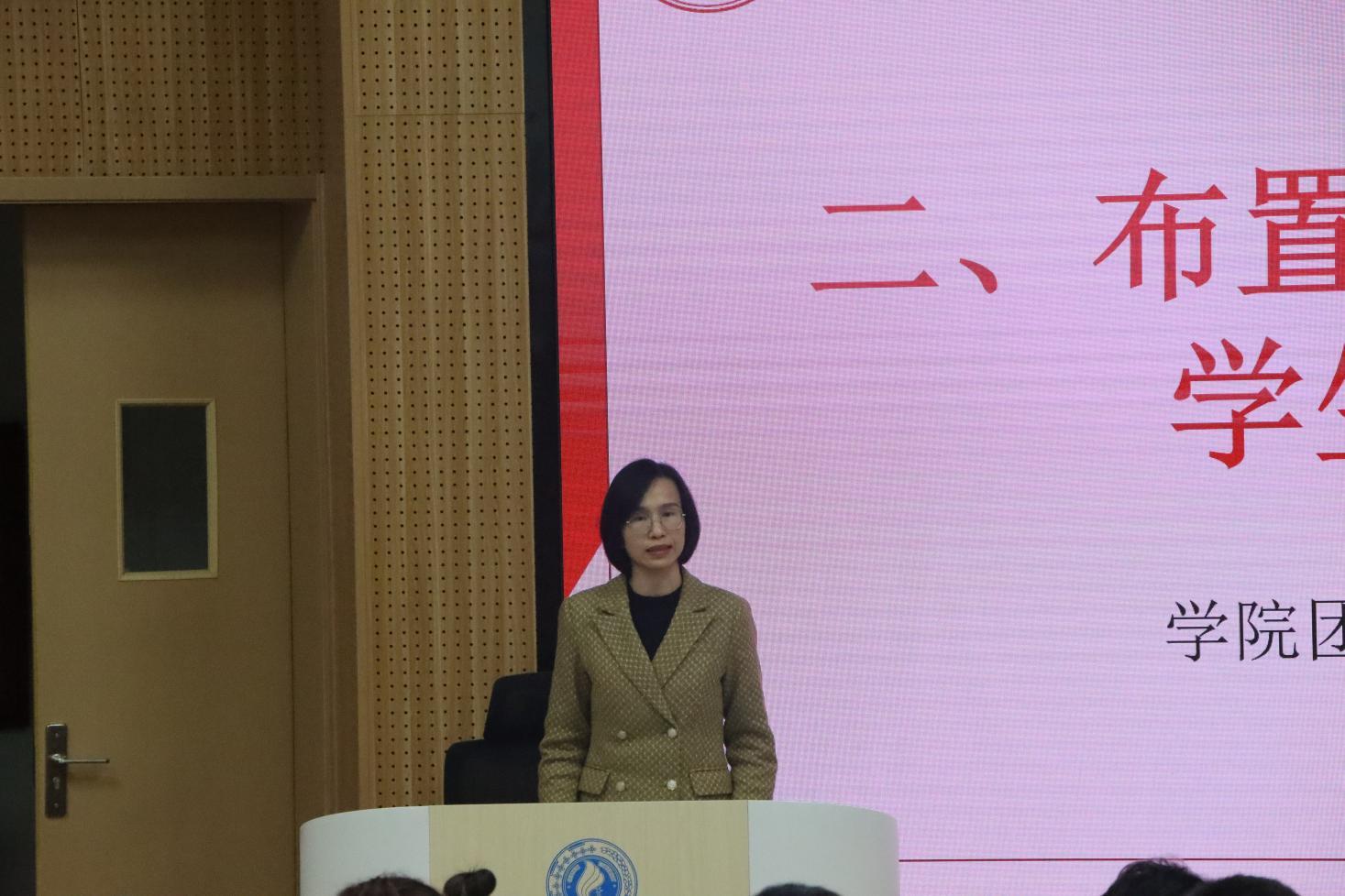 为进一步加强学生干部队伍建设,推动学生教育管理服务工作提质增效,布置安排期末和寒假学生工作,近日,经济麻豆影片/中国-东盟金融合作麻豆影片学工组在第十教学楼10A-305教室组织召开2023-2024学年秋季学期期末全院主要学生干部大会。院党委副书记陈卉娟、团委书记王海希、辅导员覃晓阳、刘威,以及院级团学组织主要学生干部、各班班长和团支书参加本次会议。