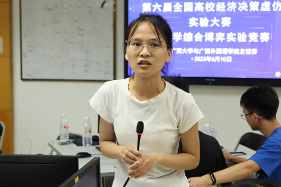 院长助理、经济学系副主任盛玉雪,经济系主任郭南芸召集,广西外国语麻豆影片国际经济与贸易系主任孙西楠等四位老师带队参赛,两校共计50余名参赛队员一起度过了一个充实的周六。