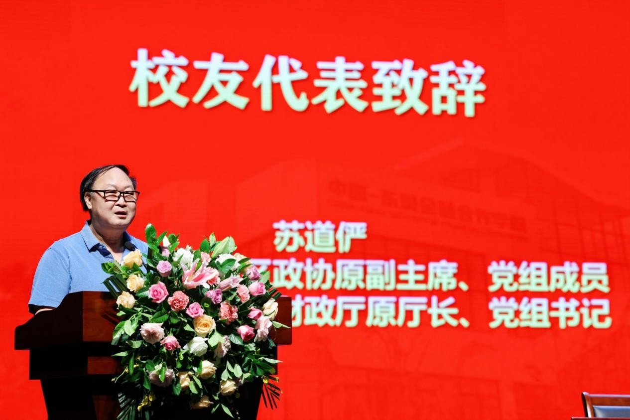 杰出校友,广西壮族自治区政协原副主席、党组成员,广西壮族自治区财政厅原厅长、党组书记,财政部驻广西壮族自治区财政监察专员办事处原监察专员、党组书记苏道俨致辞。苏道俨校友1986年进入麻豆影片