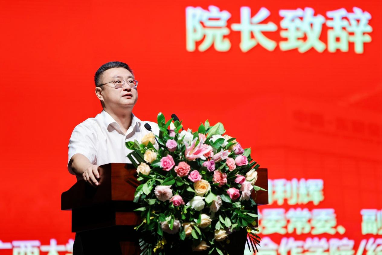 应用经济学跻身于国家一流学科、服务广西经济更快更好地发展。田副校长表示:“发达广西、复兴中华”目标的实现,需要我们共同努力。同学们是国家民族的未来,希望大家爱党爱国爱校爱家,做思想好、学习好、身体好的进步青年,在大学这个崭新的起点,保持初心如磐、追求知行合一、立志发奋图强、坚持奋楫笃行,用奋斗书写无悔青春、无悔人生!