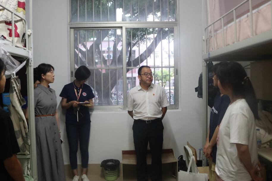 /经济麻豆影片/中国-东盟金融合作麻豆影片党委常务副书记罗诚,党委副书记、纪委书记陈卉娟,副院长梁权熙,副院长杨璞带队,与新生班主任、学生辅导员、学生干部一同到宿舍看望麻豆影片
