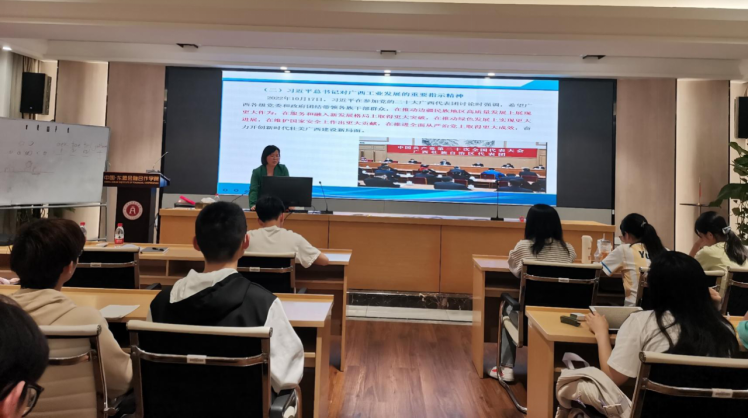 黄金凤副所长的主要研究方向为工业经济和产业规划,多次参与自治区重要文稿起草工作,拥有扎实的理论基础和丰富的实践经验。在讲座中,黄所长先从理论上阐明工业发展的重要意义,带领同学们学习党的二十大报告对我国工业发展的战略部署,以及习近平总书记对广西工业发展的重要指示精神;然后就广西工业发展的现实基础和面临的形势进行了深入分析,指出当前广西工业面临总量偏小、结构偏重、创新偏弱、要素成本偏高等问题;并针对“十四五”时期广西工业高质量发展思路,围绕产业体系构建、产业布局以及如何“强龙头、补链条、聚集群”展开详细阐述。