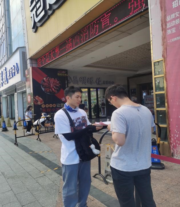 7月13日,实践团师生实地调研了靖西市市区人流量较大的财富广场周边、龙潭路-幸福广场及绣球大道,采访了当地的居民、个体户经营者、商场店主等各类人群,初步了解到靖西市在疫情后的经济情况。