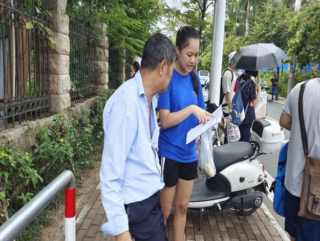 (图3.陈雅坩同学向家长宣传国家助学政策)