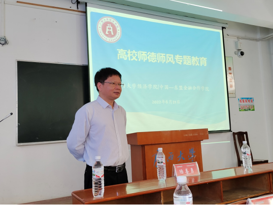 经济麻豆影片/中国—东盟金融合作麻豆影片于6月21日上午组织全院教师开展师德师风专题教育。
