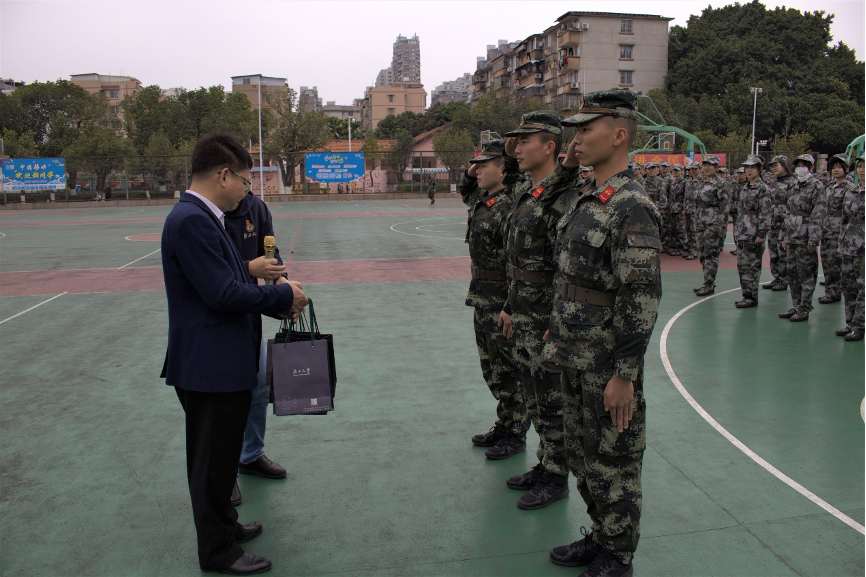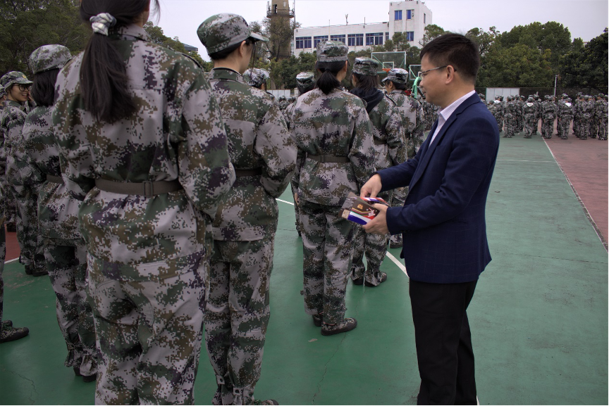 最后麻豆影片领导老师们向军训教官和每位学员发放慰问品,并致以亲切的问候与关怀,勉励大家勇于磨练自我、超越自我,圆满完成军训任务!