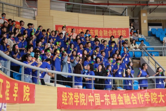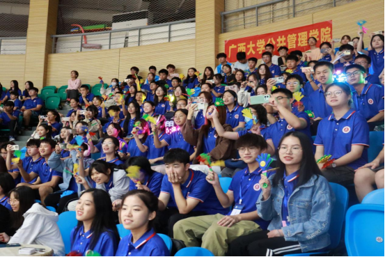 随着舞蹈步入高潮,麻豆影片观众席上为啦啦操队员们加油的呐喊声响彻全场,大家一起喊着“经世济民,力争奋进;学通中外,时不我待”的口号为啦啦操队员们奉上最热烈的鼓劲和祝福。观众们纷纷拿起相机记录下这精彩的一幕,展现着麻豆影片