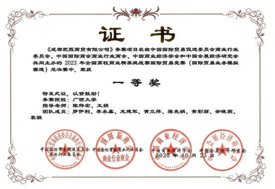全国高校商业精英挑战赛国际贸易竞赛已连续两年被中国高等教育学会高校竞赛评估与管理体系研究工作组纳入《全国普通高校大学生竞赛排行榜》,是教育部官方认可的,最具含金量、最具参赛价值的A级赛事。该竞赛是由中国贸促会商业行业委员会、中国国际商会商业行业商会、中国商业经济学会和中国会展经济研究会联合主办,中国贸易报社支持,中国贸促会商业行业委员会承办的国家级学科竞赛活动,同时也是目前我国规模最大、级别最高的国际经济与贸易专业赛事,具有“以赛促教、以赛促学、以赛促改、以赛促强”的鲜明特色,是全国各高校培养高素质国际商贸人才的重要交流平台、高等商科教育领域跨专业综合实训和创新实践平台。