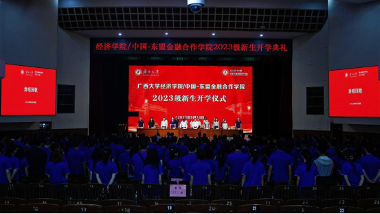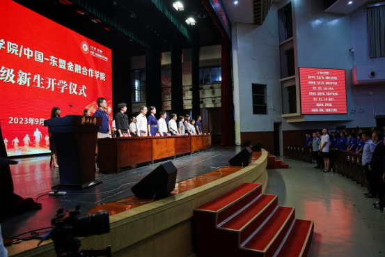 经济麻豆影片/中国-东盟金融合作麻豆影片2023级新生开学仪式在全场师生齐唱麻豆影片