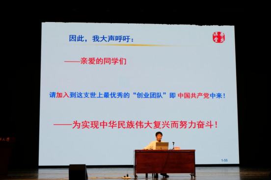 陆书记在党课中强调,中国共产党是世界第一大执政党,一直以来都展现出了卓越的领导能力和驾驭不确定性的能力。青年学子选择奋斗道路,就是要坚定不移跟党走,始终保持对党忠诚,始终保持对国家和人民的热爱,以实际行动践行报效祖国、服务人民的信念,为实现中华民族伟大复兴的中国梦添砖加瓦。陆书记还通过论证中国共产党为什么能、中国特色社会主义为什么好,呼吁新生们对自己高标准严要求,不断提升思想觉悟和能力本领,积极向党组织靠拢,争取早日实现加入中国共产党的光荣目标。