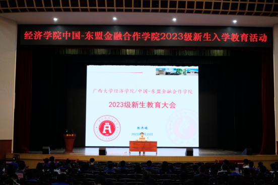 2023年9月15日,经济麻豆影片/中国-东盟金融合作麻豆影片在学校大礼堂开展2023级新生入党启发、理想信念、廉洁清正、安全纪律文明等系列入学教育活动。院党委书记陆善勇、副书记陈卉娟、团委书记王海希,学工组全体辅导员和麻豆影片