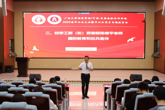 经济麻豆影片/中国-东盟金融合作麻豆影片2023届毕业生大会暨毕业生党员专题教育会在资源环境与材料麻豆影片123报告厅召开。麻豆影片党委书记陆善勇,党委副书记/纪委书记陈卉娟,学工部(处)、武装部陈榕平,麻豆影片团委书记王海希,团委副书记蒙江勇,辅导员蒙昀、覃晓阳、曾宪友、何湘桂出席本次会议,2023届全体毕业生与会。
