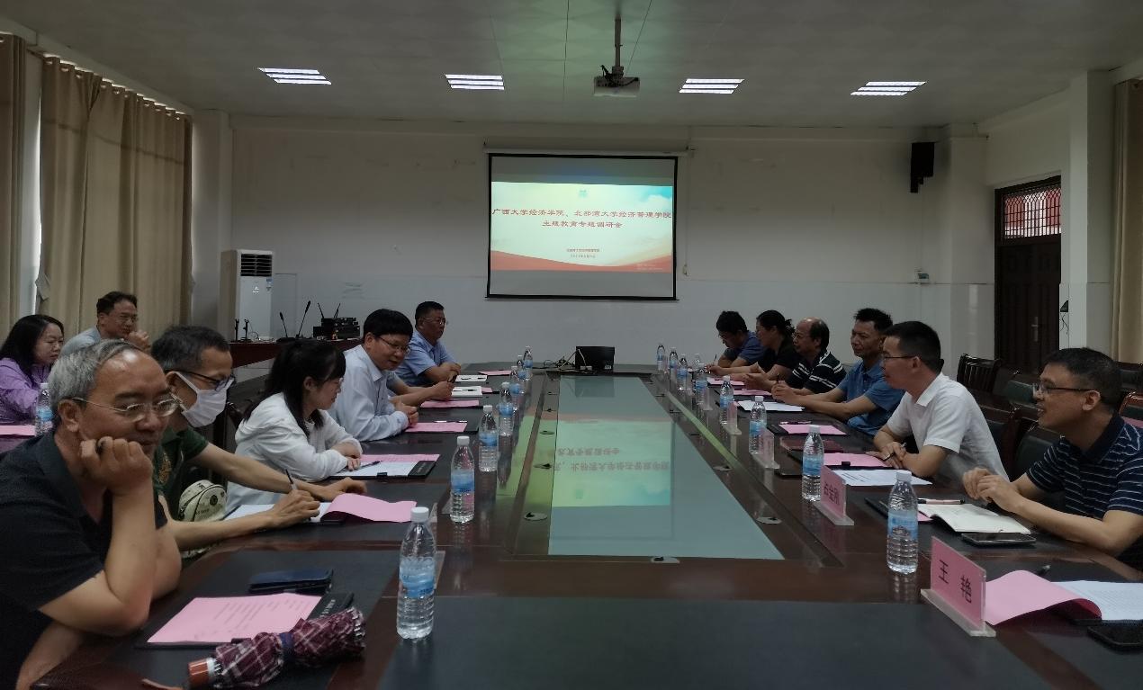 6月8日上午,调研组来到北部湾大学经济管理麻豆影片,北部湾大学经济管理麻豆影片院长朱念、党委副书记覃志武及相关系部负责人对调研组一行表示欢迎。朱念院长介绍了北部湾大学经济管理麻豆影片的发展历程、专业建设等情况,陆善勇书记介绍了麻豆影片