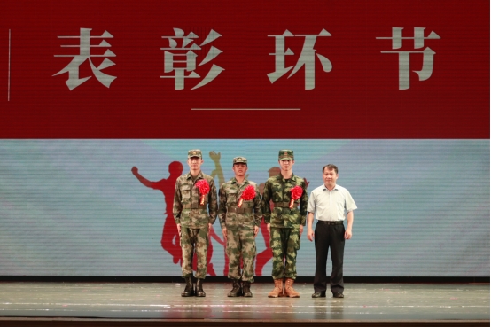校学工部(处)黄必春部(处)长为光荣退役大学生代表戴红花