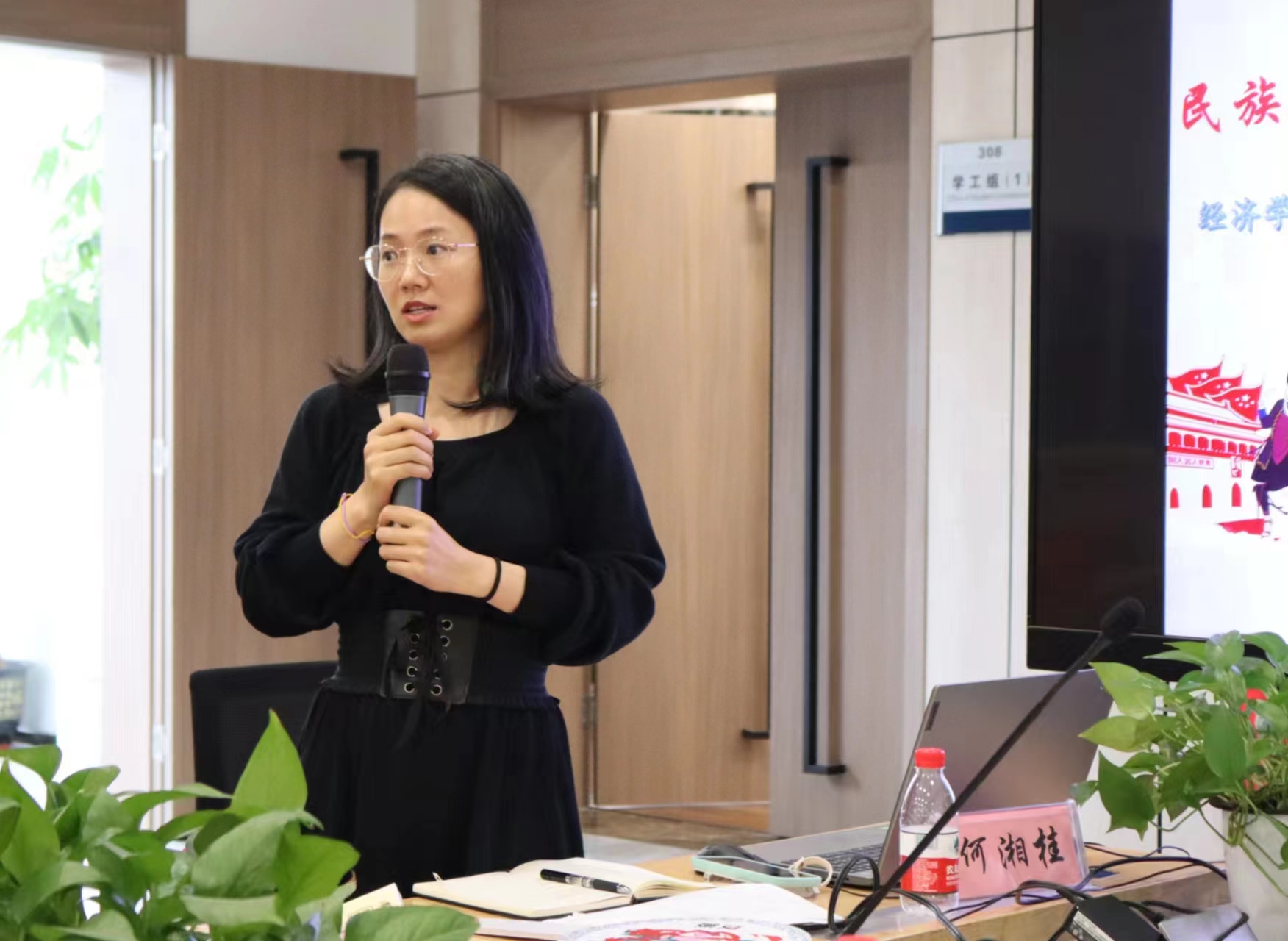在与会师生共同观看短片《火红的石榴籽——习近平的民族情》后,麻豆影片党委副书记陈卉娟介绍了麻豆影片