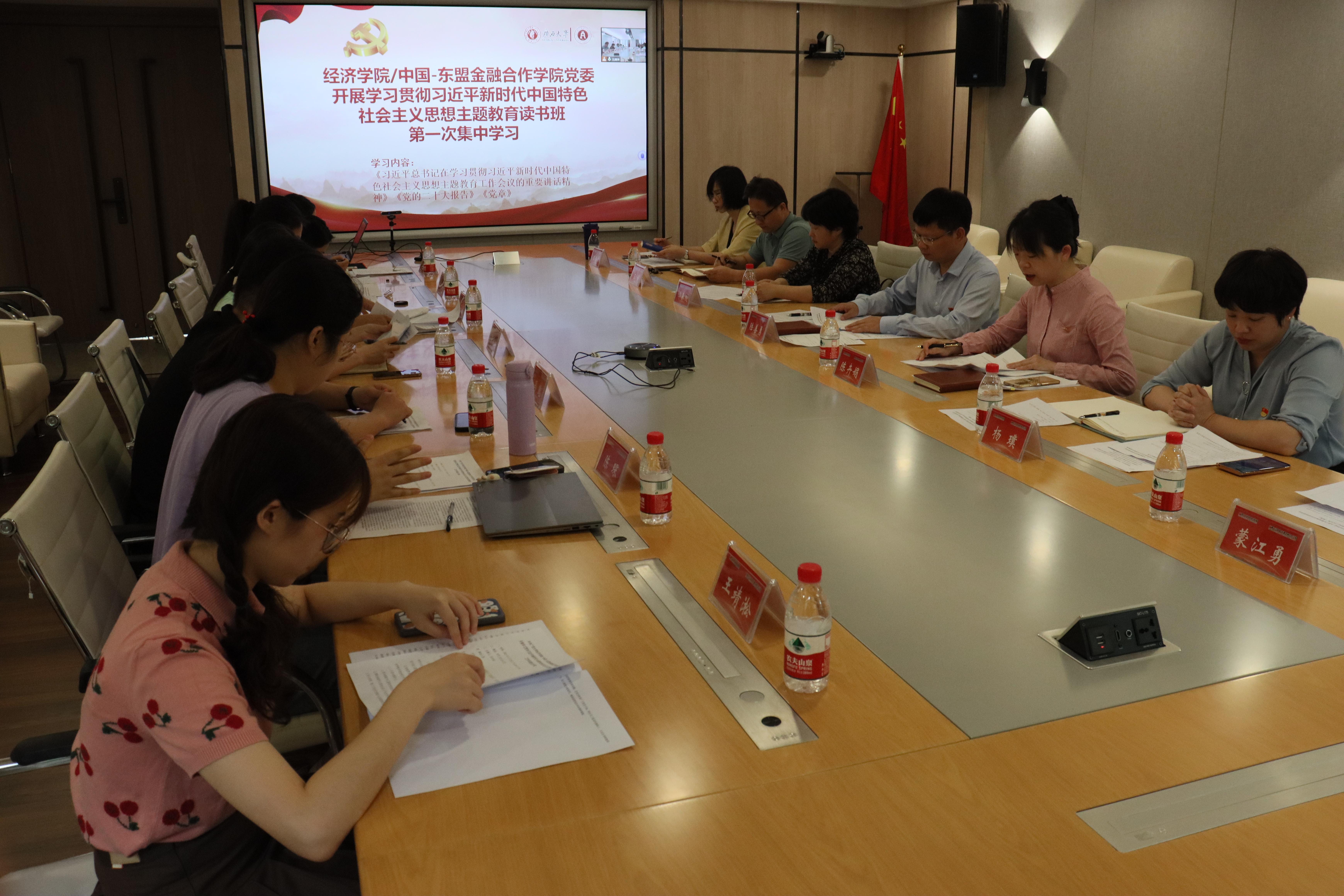 党委关于深入开展学习贯彻习近平新时代中国特色社会主义思想主题教育的部署和要求,经济麻豆影片/中国-东盟金融合作麻豆影片党委举办读书班,于4月20日开展第一次集中学习和主题教育专题研讨。麻豆影片