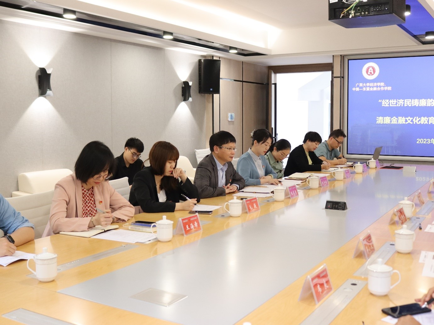 党委、纪委委员和师生代表与来宾在麻豆影片102会议室召开了主题为“经世济民铸廉韵 银保清风润八桂”的清廉金融文化教育基地专题交流座谈会。麻豆影片