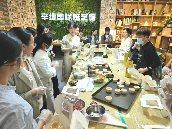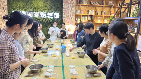 活动邀请了高级西点师现场为大家讲授烘焙知识,从称量面粉、制作蛋糕胚,到裱花、装饰整个过程手把手教学,在西点师的教学带领下,老师们享受着亲手烘焙的乐趣。烘焙完成后,老师们纷纷与自己的作品留念,现场四处充满蛋糕的香甜和老师们的笑声,活动气氛浓郁而欢乐。