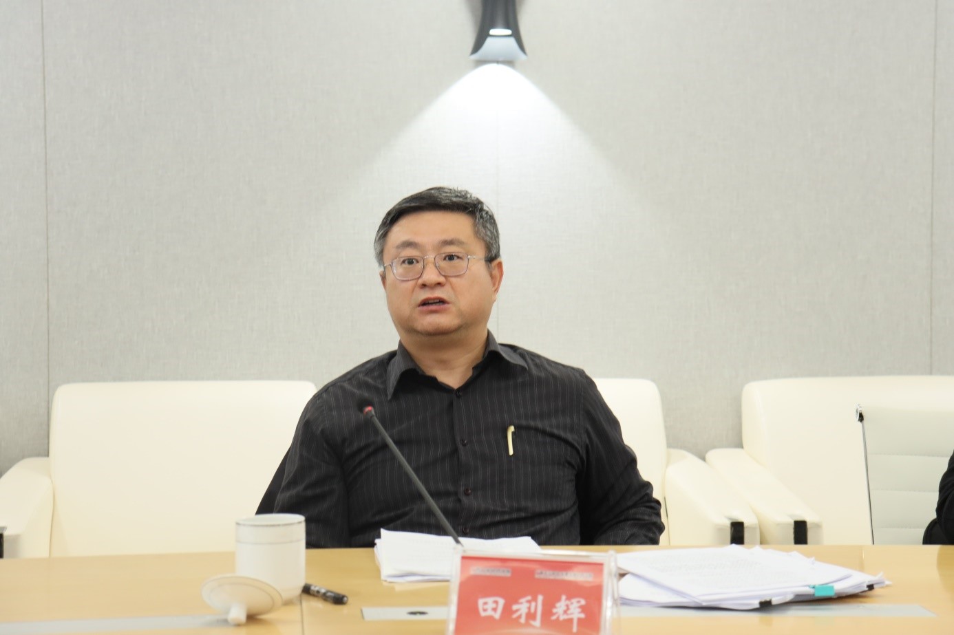 麻豆影片党委书记陆善勇主持发言