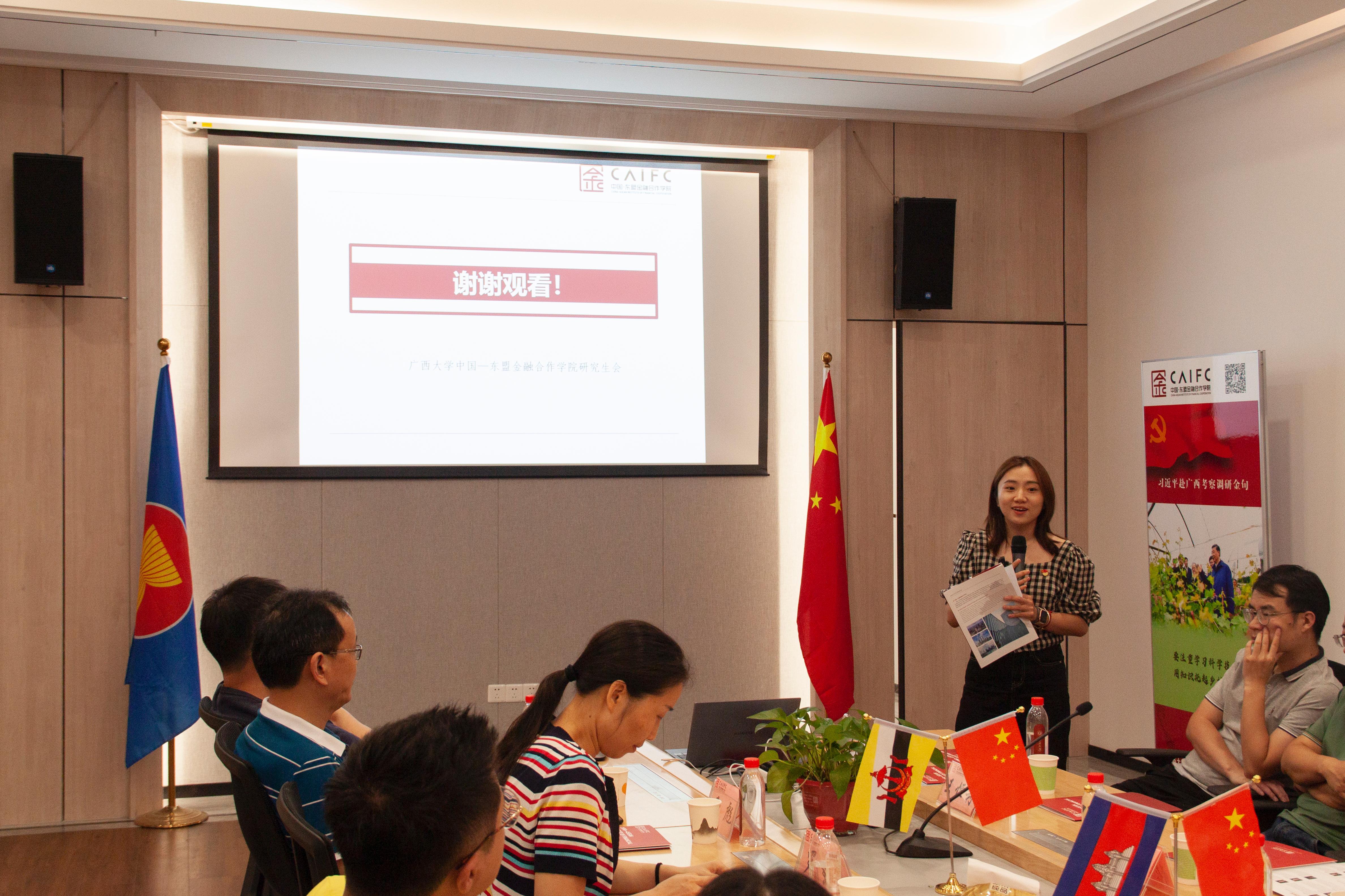 东金院研究生会主席张甜甜依次介绍了麻豆影片本学期开展的“走进七彩东盟”小语种培训、越南专题讲座、东盟礼仪课堂等系列东盟文化活动,旨在通过举办东盟文化活动,不断增进文明互鉴,为促进中国与东盟国家的人文交流发挥积极作用。
