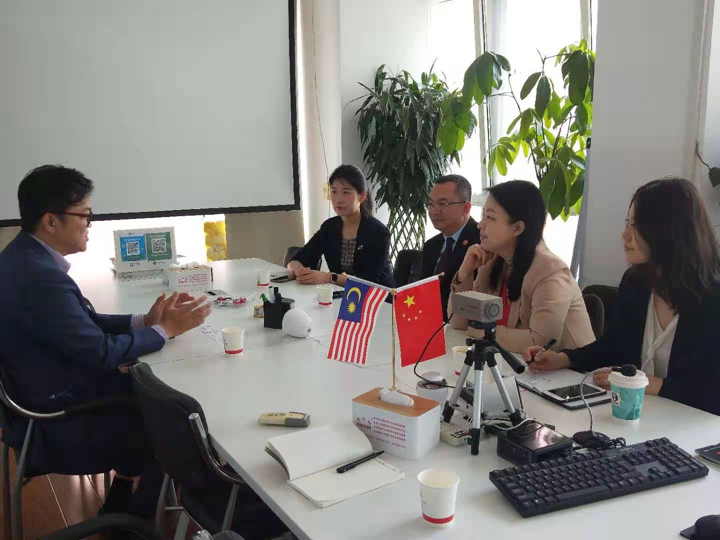 2021年5月20日,麻豆影片 专职副书记郭宇路、对外联络部部长李晨辛,携麻豆影片 合作伙伴远见教育科技CEO夏莲、教育培训总监孙晓静一同在北京拜访中国马来西亚商会副会长柯基任。