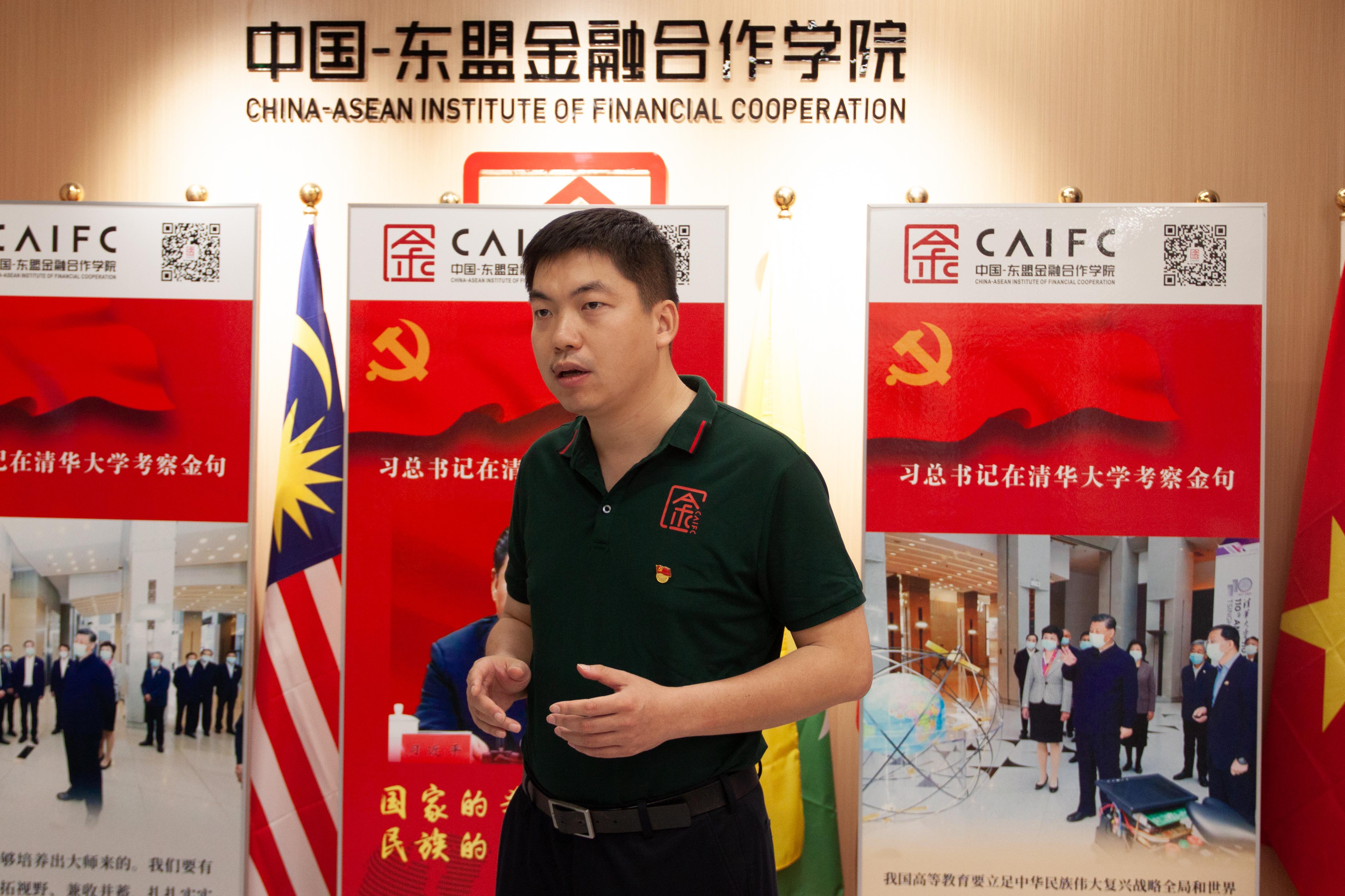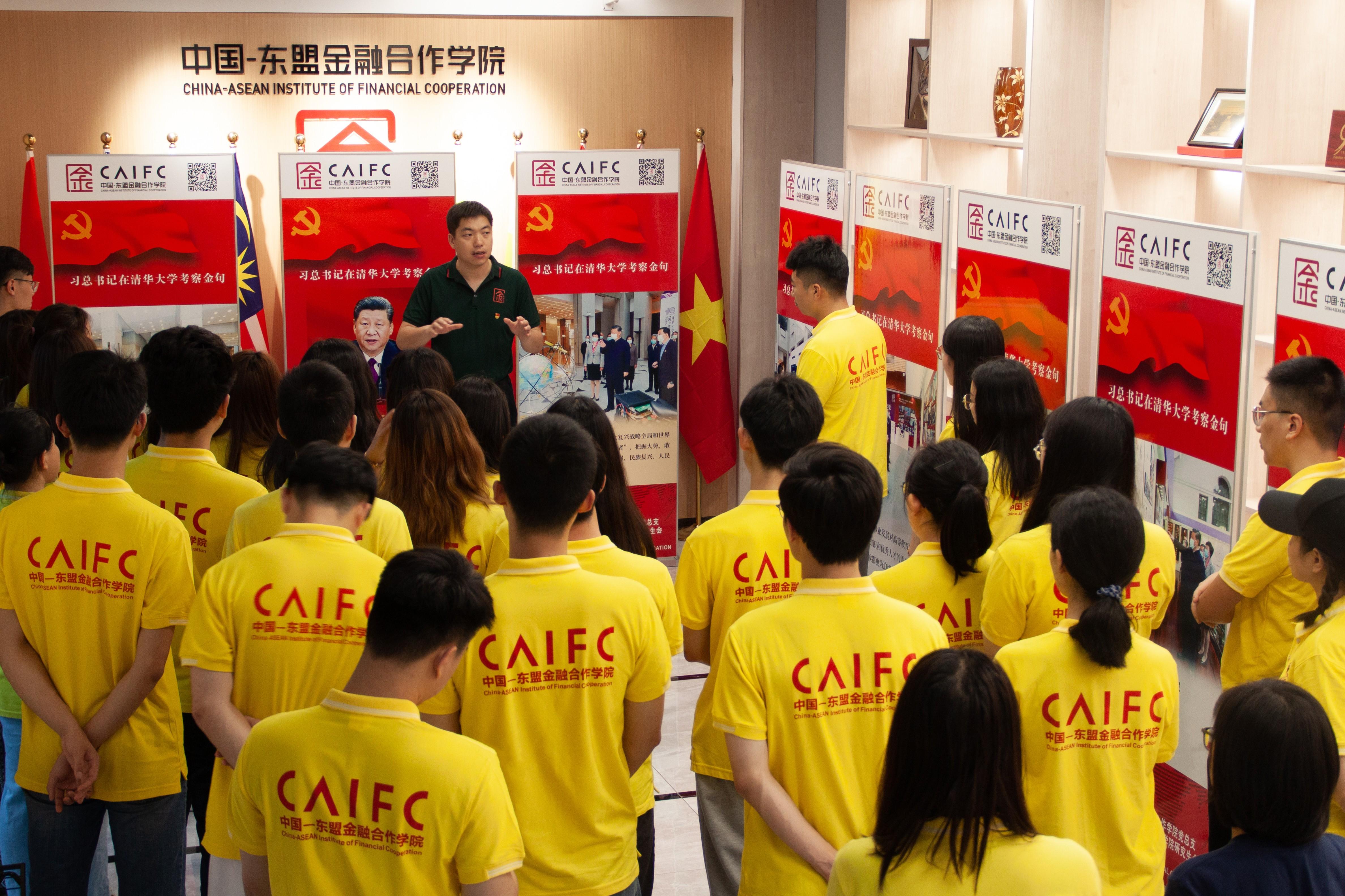 为了学习贯彻习近平总书记在清华大学考察时重要讲话精神,中国—东盟金融合作麻豆影片组织全体学生党员和积极分子于5月18日下午在麻豆影片一楼大厅共同参观习近平总书记在清华大学考察金句展板,中国—东盟金融合作麻豆影片党总支副书记、常务副院长陈懿出席本次展会。