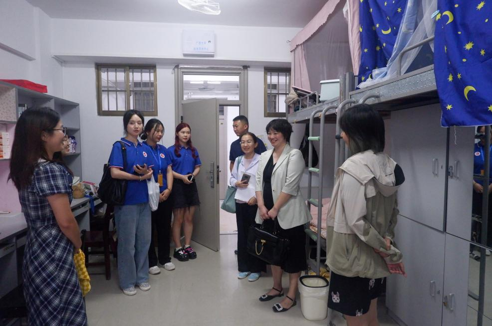 /经济麻豆影片/中国-东盟金融合作麻豆影片党委常务副书记罗诚,党委副书记、纪委书记陈卉娟,副院长梁权熙,副院长杨璞带队,与新生班主任、学生辅导员、学生干部一同到宿舍看望麻豆影片