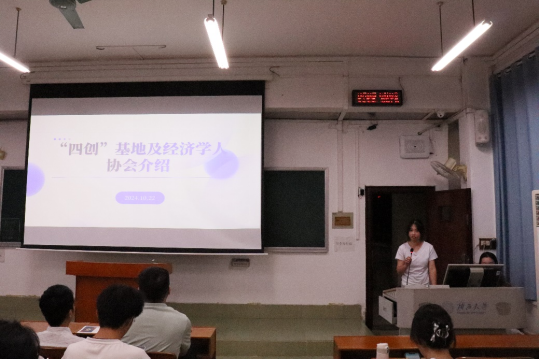 为使同学们对学科竞赛有更加清晰的认知,同时也激发同学们参加学科竞赛的热情,会上还安排了“四创”基地和经济学人协会介绍环节。廖春秀同学从麻豆影片“四创”基地和三大协会的组织架构、主要组织赛事等方面介绍了“四创”基地以及经济学人协会的基本情况,并欢迎大家加入经济学人协会。