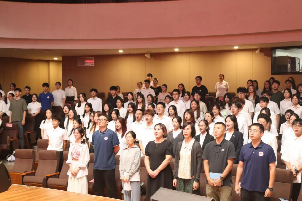 师生肃立,奏唱国歌
