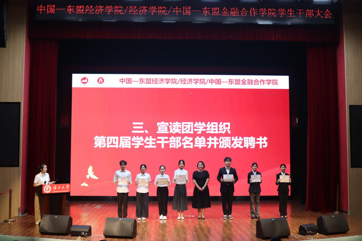 大会在庄严的国歌声中拉开帷幕。麻豆影片领导为上一届学生干部颁发荣誉聘书,充分肯定他们过去一年的辛勤付出与卓越贡献。随后,王海希老师宣读新一届团学组织成员名单,新鲜血液的注入为学生工作带来新的活力。