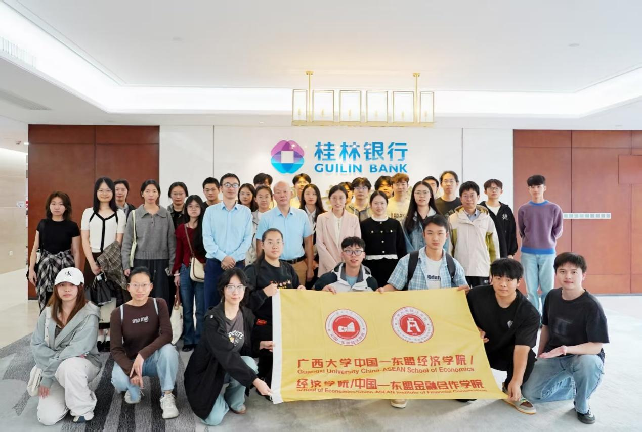 中国—东盟金融经贸创培231班金融学方向学生在常雅丽老师和唐书香老师的带领下,走进桂林银行开展《金融市场学》课程的实践教学活动,沉浸式感受区域性银行的发展脉络与金融服务创新。数字经济系彭安兴、张梦凡、卢家锐老师共同参与活动。
