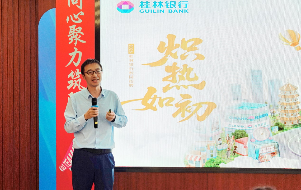 实践活动的核心环节,桂林银行总行资金中心孙修勇副总经理、南宁分行人力资源部曾德蒋总经理、南宁分行科技支行李素芸行长分别给学生做专题报告。孙修勇副总经理围绕金融市场展开分享,解析了地方银行在金融市场中的角色定位与业务逻辑;李素芸行长围绕“聚焦科技金融,培养综合性人才”,结合桂林银行在数字风控、科技金融等领域的案例,讲解了科技与金融融合的创新路径。最后,曾德蒋总经理讲解了桂林银行的人员需求,并针对金融专业学生的成长通道、能力要求等做出说明,使学生对未来自身能力培养和职业规划的认识更加清晰。