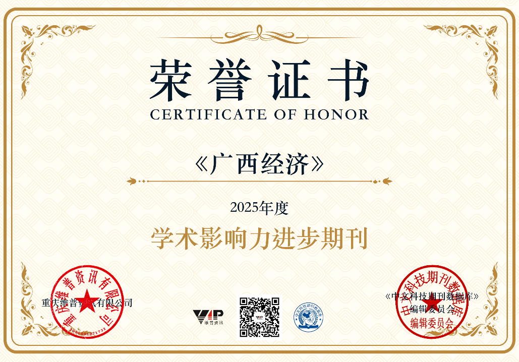 近日,重庆维普咨询有限公司与《中文科技期刊数据库》编辑委员会正式发布“学术影响力进步期刊(2025)”评选结果。《广西经济》凭借显著的影响力提升,获评“学术影响力进步期刊”。