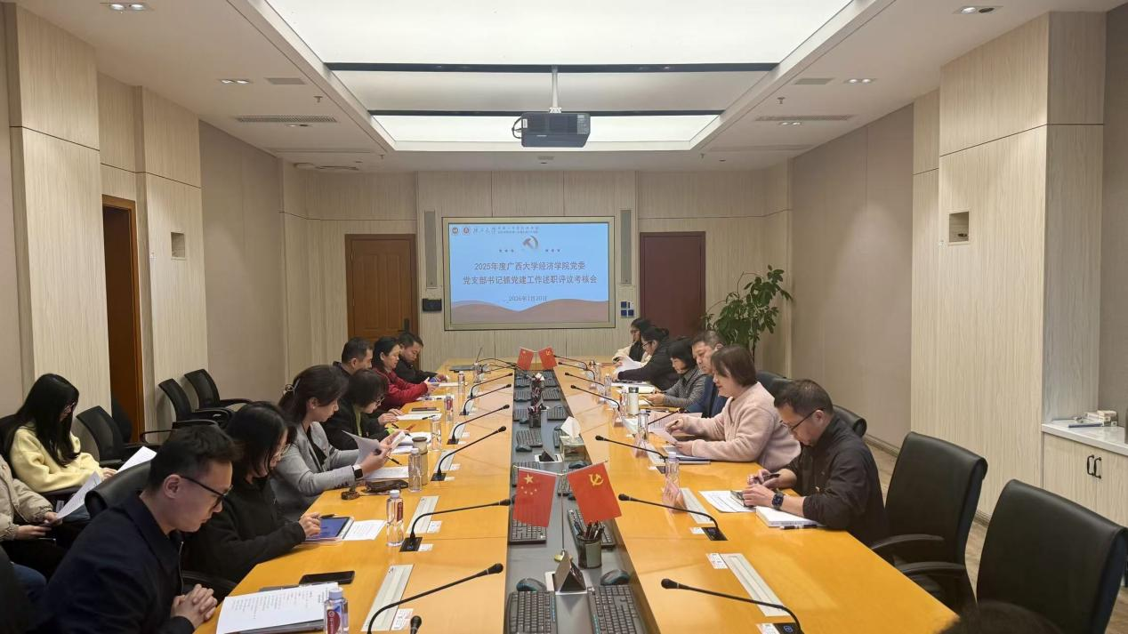 经济麻豆影片党委召开2025年度党支部书记抓党建工作述职评议考核会,通过述评结合的方式,全面检验基层党组织党建工作成效,压实管党治党政治责任。麻豆影片党委书记姜玮出席会议并作总结讲话,党委副书记刘梦娟主持会议。
