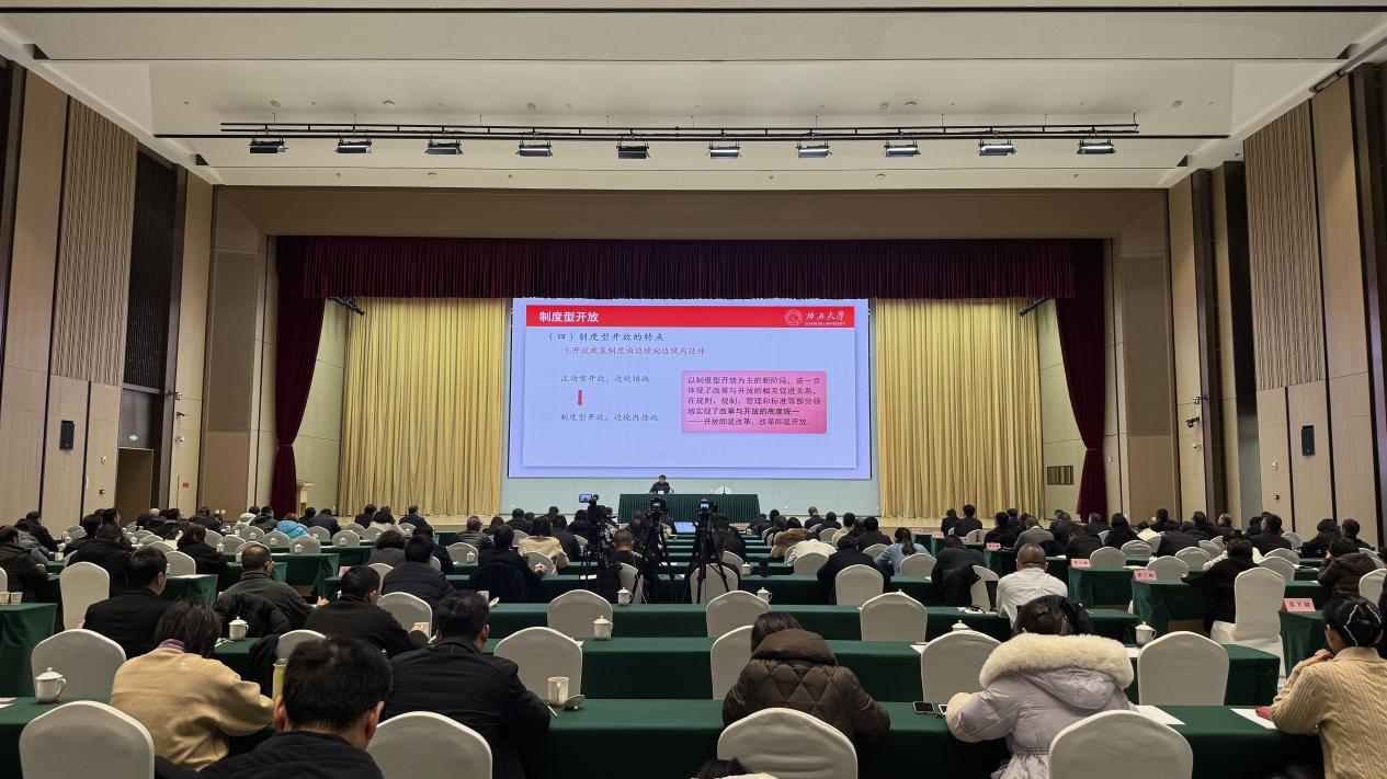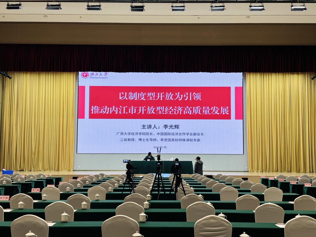 李光辉院长结合党的二十届四中全会公报和“十五五”发展规划纲要,从制度型开放的核心内涵、鲜明特点与战略意义切入,深度解读“十五五”时期开放型经济发展新形势、新机遇、发展重点及趋势,并紧密结合内江区位优势与产业实际,围绕“十五五”时期内江市开放型经济发展的定位、培育物流新质生产力、建强开放型经济平台、对接国际经贸规则、推进数字内江建设、构建人才保障体系等方面提出专业务实建议,为内江开放型经济高质量发展指明方向。