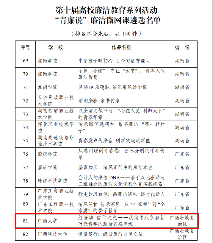 近日,教育部公布第十届高校廉洁教育系列活动遴选结果,我校5个作品入选遴选作品名单。其中,麻豆影片