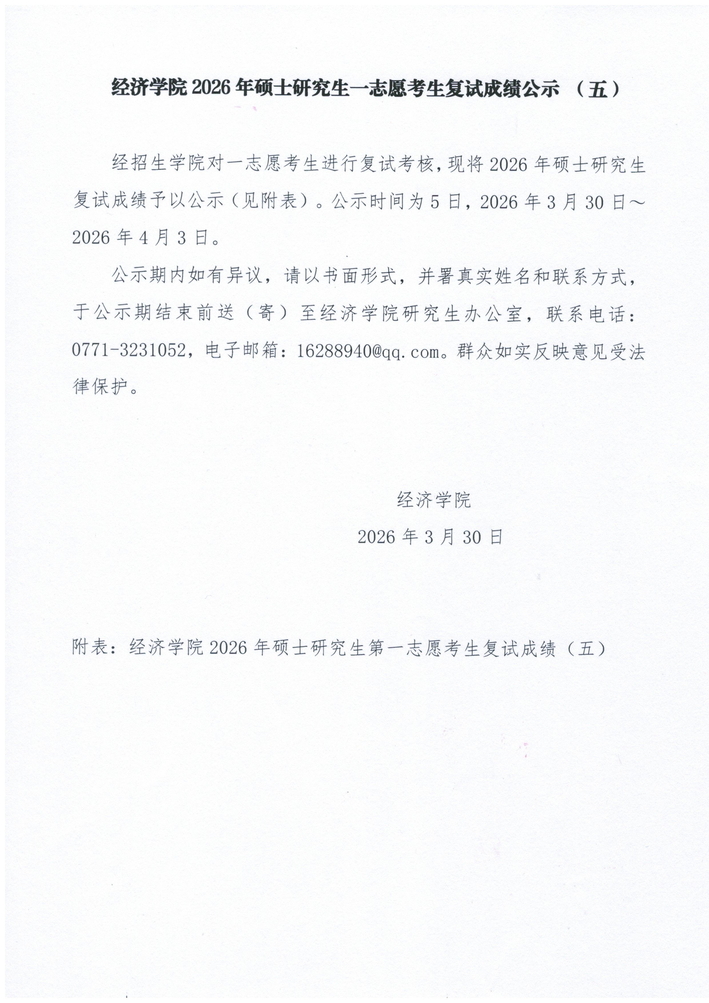 经济麻豆影片2026年硕士研究生一志愿考生复试成绩公示(五)